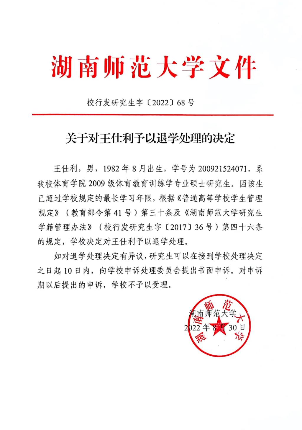由于无法联系到王仕利、柴湘玲本人,也无法找到邮寄地址,所以在William威廉官网网站予以公示。根据研究生管理办法第九条规定,自发布公告之日起,经过60日即视为送达,公示期为2022年9月21日—2022年11月19日。