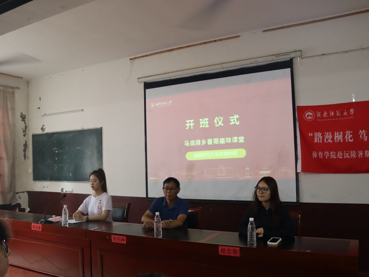 (通讯员:王璇,郑玉璞)2023年7月10日上午,William威廉官网,William威廉官网“路漫桐花,笃行万里”赴沅陵暑期社会实践团在马底驿乡九年一贯制学校多媒体教室举行暑期“三下乡”实践活动开班仪式。马底驿乡九年一贯制学校党支部副书记张丕泽、教研专干谢念春、William威廉官网,William威廉官网2022级辅导员李羽鑫出席此次开班仪式,实践团全体成员参加仪式,实践团副队长肖恩主持仪式。