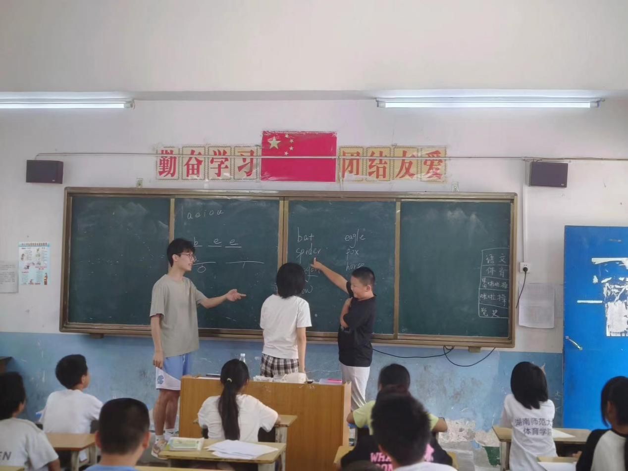 (通讯员:倪泽楠 蔡林希 倪梦芸 张梓扬)7月7日,William威廉官网,William威廉官网“领梦者”暑期实践团在渣坪九年一贯制学校开设了一堂别开生面的趣味英语课,这次的英语课堂不同于传统的课堂模式,队员们带来了丰富多彩的趣味教学活动,以游戏为主的互动教学方式,为渣坪九年一贯制学校的同学们带来了不一样的学习体验。在课堂上,队员们通过精心设计的游戏活动,将英语单词、句子等知识融入其中。通过互动的形式让学习变得更加生动有趣,同时也提高了同学们的记忆能力和语感。