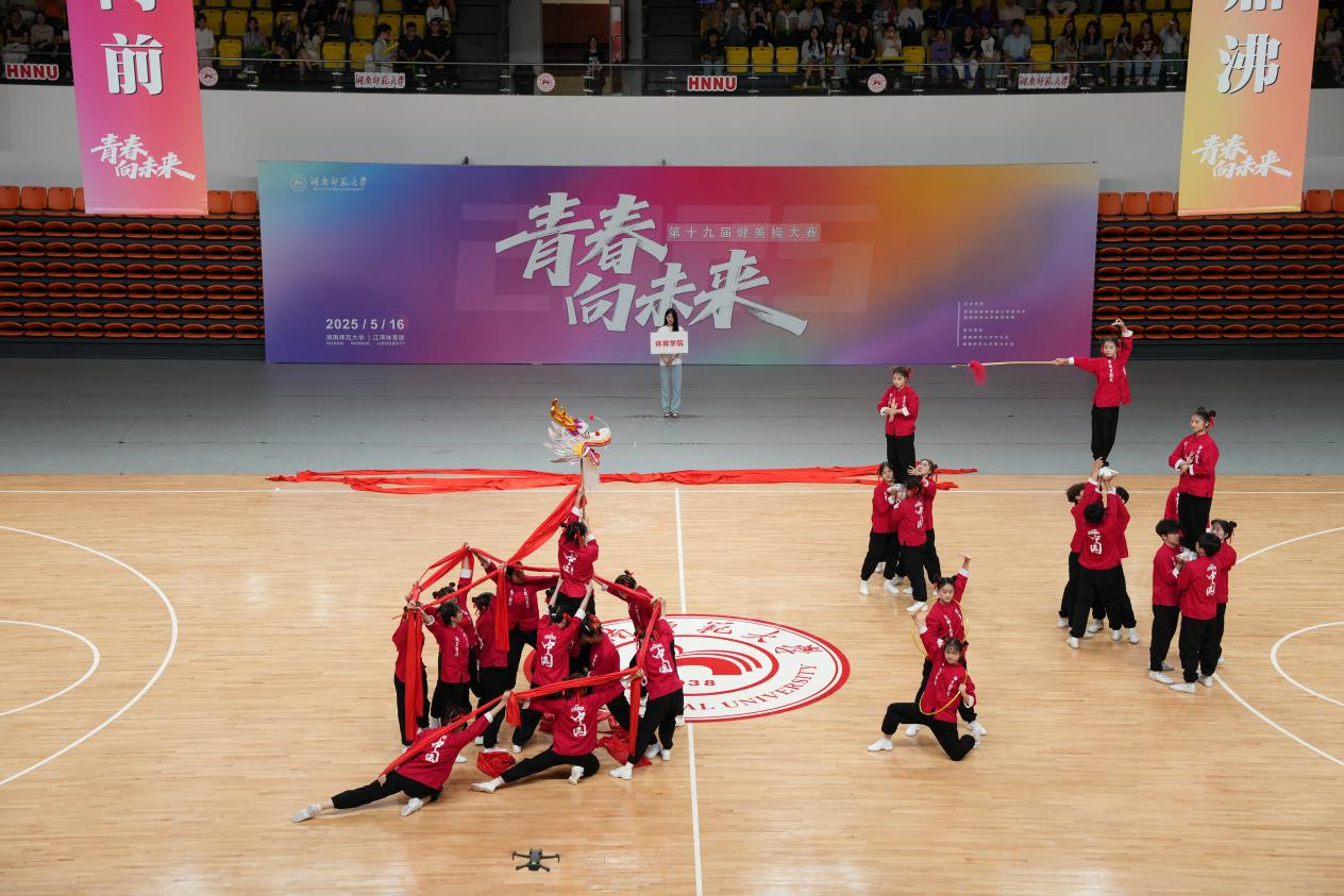 研究生代表队的李萍老师和同学们带来的节目《致青春》别具匠心。他们用一张老照片打开时光之门,踏上回忆的奇妙之旅,让青春与未来交融,让梦想绽放出最璀璨的光芒。流畅的队形变换、精准的动作配合、多样的风格展示,共同打造了精彩的表演,展现了体院学子的专业素养。研究生代表队得分为9.80分,荣获特等奖与最佳创意奖。