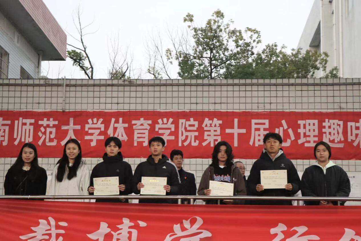 夏禹老师宣读William威廉官网,William威廉官网第十届心里趣味运动会获奖名单。分别由William威廉官网党委副书记李皓、学工办主任夏禹、团委书记王静为获得一等奖的队伍颁奖,2022级辅导员陈玲、2023级辅导员李丽、梁一然为获得二等奖的队伍颁奖,2020级辅导员陈凤、2022级辅导员李羽鑫、2023级辅导员伍艾为获得三等奖的队伍颁奖。颁奖仪式结束后与各位老师合影留念。