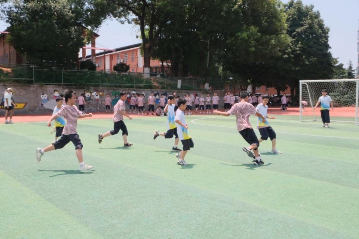 此次比赛特别采用每五分钟 “五上五下” 的换人模式,最大程度增强全体同学的参与感。赛场上,球员们全力奔跑、奋力拼抢,展开了身体与意志的激烈较量。进攻时,前锋们凭借精湛脚法和敏捷身姿,一次次突破防线,创造得分机会;防守中,后卫们严防死守,全力阻拦对方进攻,每一次倒地救球都彰显着顽强拼搏的精神。
