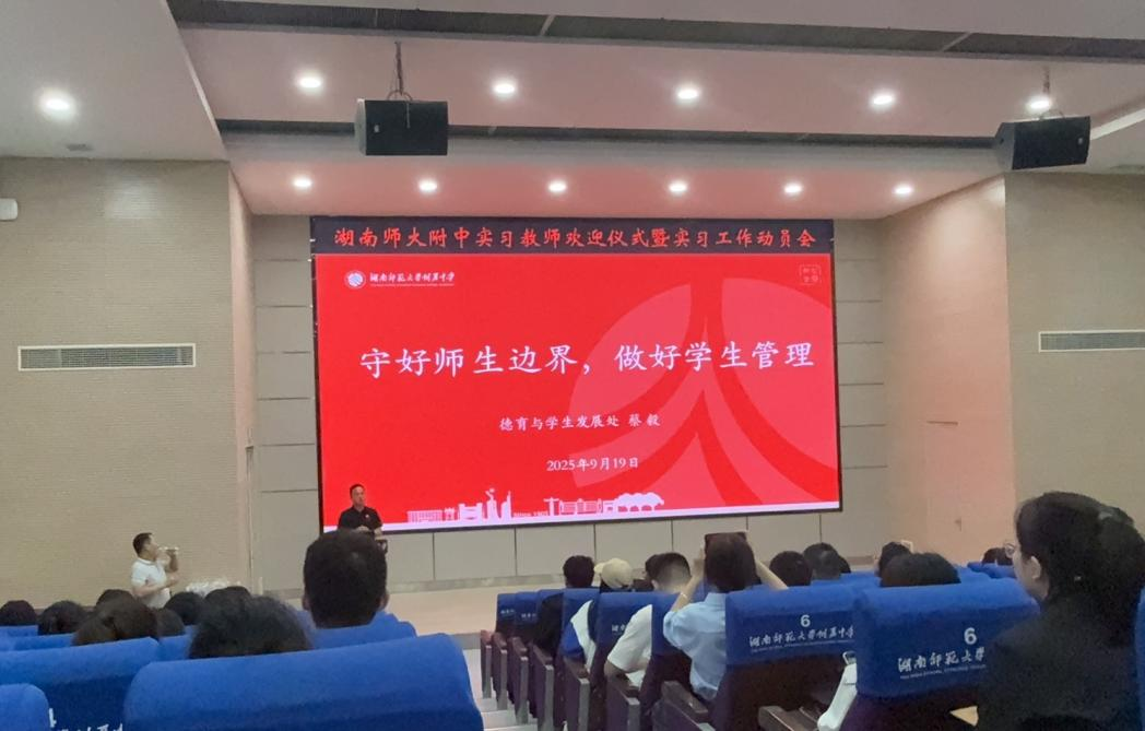 本周五,湖南师大附中组织召开实习工作动员大会,全体实习教师参会。会议围绕实习纪律要求、教学规范等内容展开,同步开展学生管理主题讲座,强化实习教师的责任意识与专业素养。